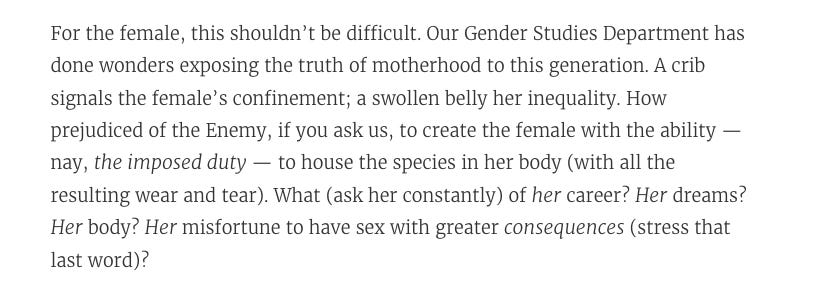 How droll it will be when we have made abortion acceptable to everyone, and women abandon their children to daycares and seek jobs as office managers.