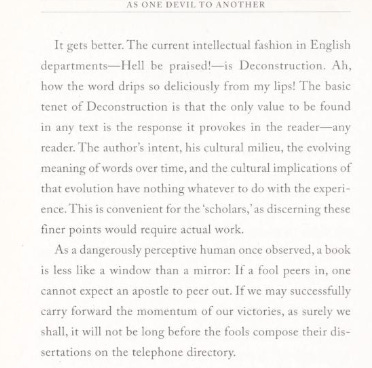 And so I would invite you writers who are interested in imitating it: what should you ask yourself before you attempt to write in the style of The Screwtape Letters? What does the demon voice accomplish for you?